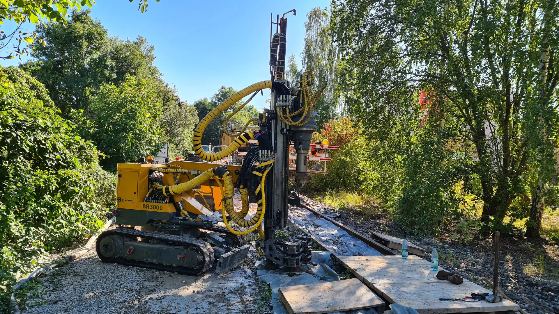 Im Bereich der ehemaligen Braunkohletiefbaugruben „Geißler“, „Geidel“ und „Junghanns“ im Stadtgebiet von Meuselwitz führte die Spesa Spezialbau und Sanierung umfangreiche Sicherungs- und Verwahrungsmaßnahmen aus. Das Ziel der Sicherungsmaßnahmen war dabei, das altbergbauliche Risiko im Gleisbereich der Kohletraditionsbahn genauer zu definierten sowie entsprechende Maßnahmen zur Sicherung zu ergreifen. Zunächst wurden Bohrungen aus den Jahren 2018 und 2019 mittels Doppelpacker überprüft und anschließend mit Zementsuspension stufenweise verfüllt. Im Anschluss wurden in den drei Bereichen der ehemaligen Braunkohletiefbaugruben ca. 3.800 m Erkundungs- und Kontrollbohrungen mit zwei Kleinbohrgeräten KLEMM KR 805 ausgeführt. Angetroffene Hohlräume und Auflockerungszonen wurden direkt über dir Rohrtour mit Zementsuspension verfüllt. Dabei kamen rund 4.500 m³ Suspension zum Einsatz, was einem Lieferumfang von 3.700 t Zement entspricht. Kein Problem für unsere Sicherungsexperten.
