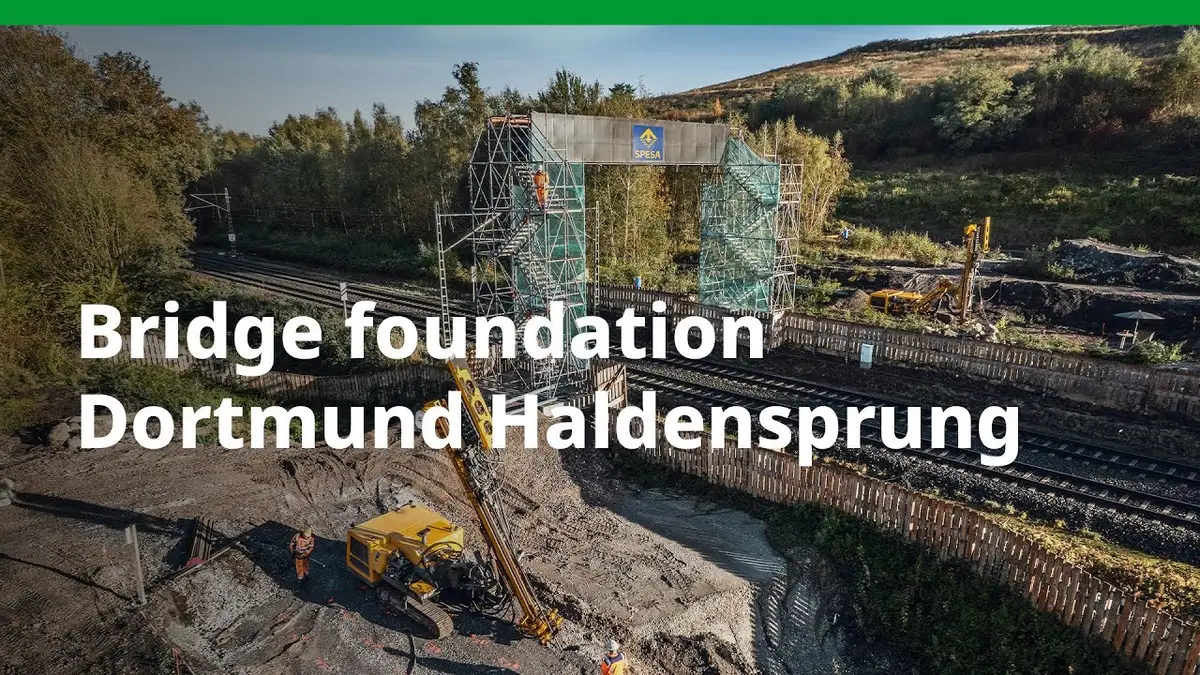 Die ehemalige Mülldeponie Deusenberg wird im Rahmen der internationalen Gartenausstellung 2027 weiter renaturiert und aufgewertet. Ein wichtiger Bestandteil dabei ist eine Brücke, die den Deusenberg über angrenzende Bahngleise hinweg mit dem neuen Kokereipark und der ehemaligen Kokerei Hansa verbinden soll. Für den Neubau der Fuß- und Fahrradbrücke "Haldensprung" wurde die SPESA Spezialbau und Sanierung GmbH mit Gründungs- und Baugrundverbesserungsmaßnahme beauftragt. Insgesamt wurden 140 Mikropfähle an den Einzelfundamenten der neuen Brücke hergestellt sowie 2.100 m Baugrundverbesserung mithilfe des von der Spesa entwickelten Niederdruckerosionsverfahren ausgeführt. Darüber hinaus wurde eine temporäre Gerüstüberführung für Fußgänger über die angrenzenden Bahngleise ausgeführt.