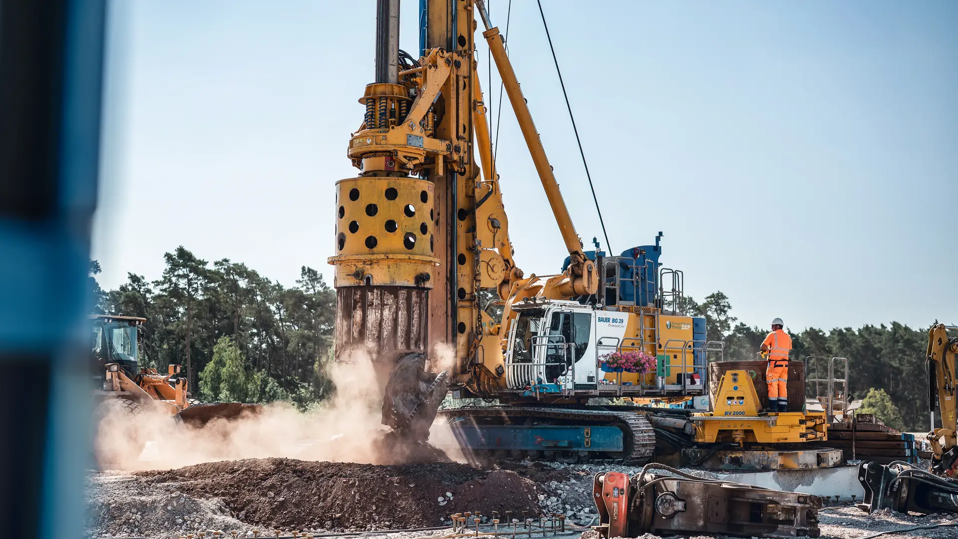Pile by pile: The 30-meter-deep main excavation pit is enclosed using the Kelly drilling method.