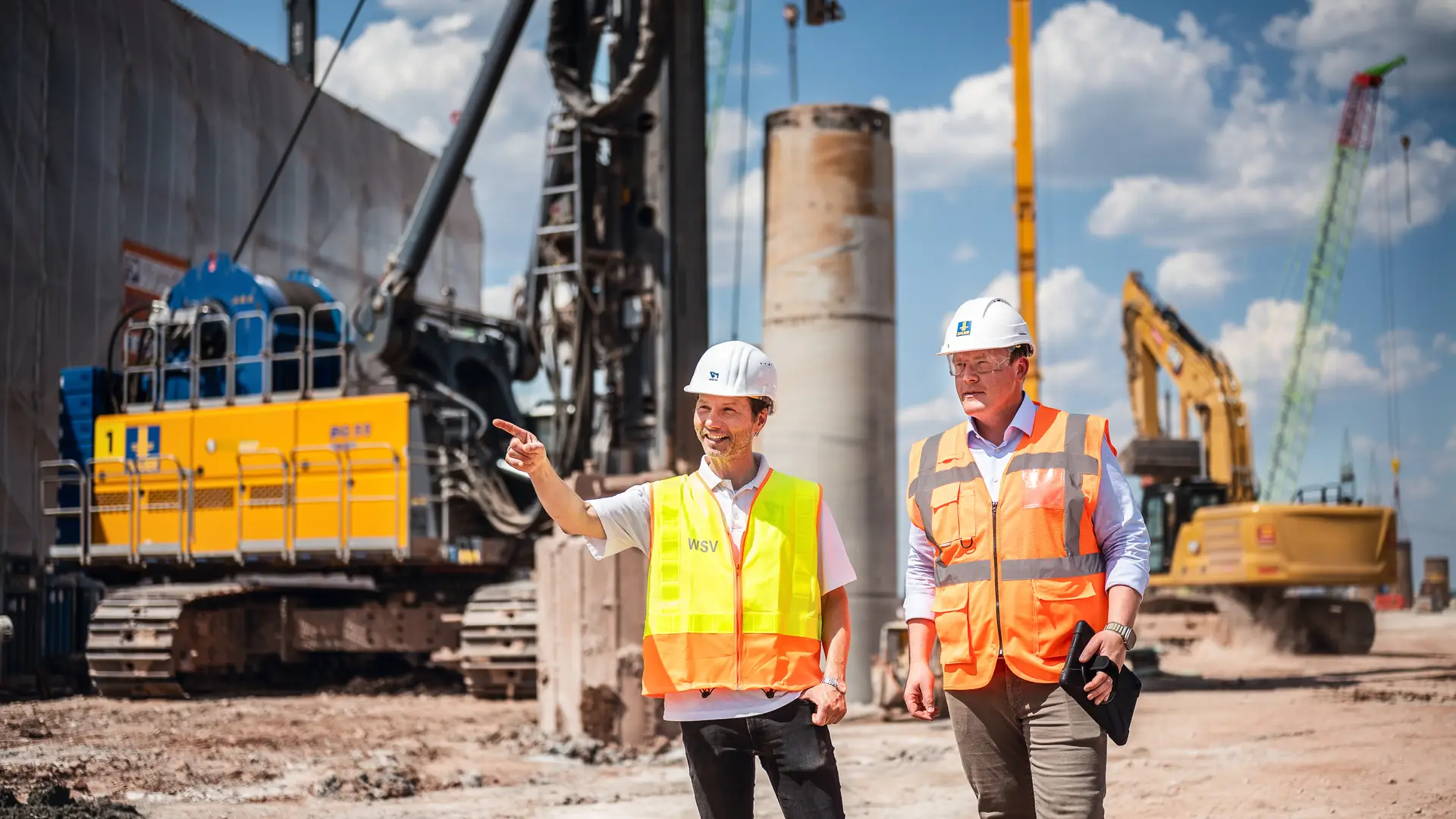 From left to right: Andreas Beier (project manager and construction representative, Aschaffenburg Waterways Construction Office) and Andreas Hertenberger (project manager, BAUER Spezialtiefbau GmbH)